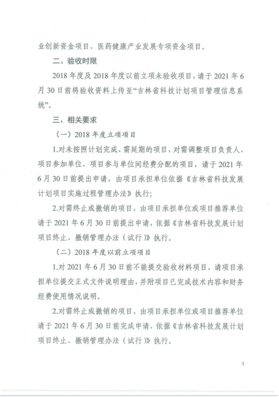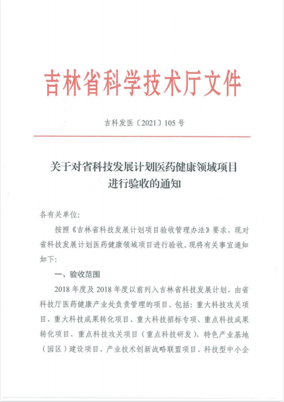 关于对省科技发展计划医药健康领域项目进行验收的通知