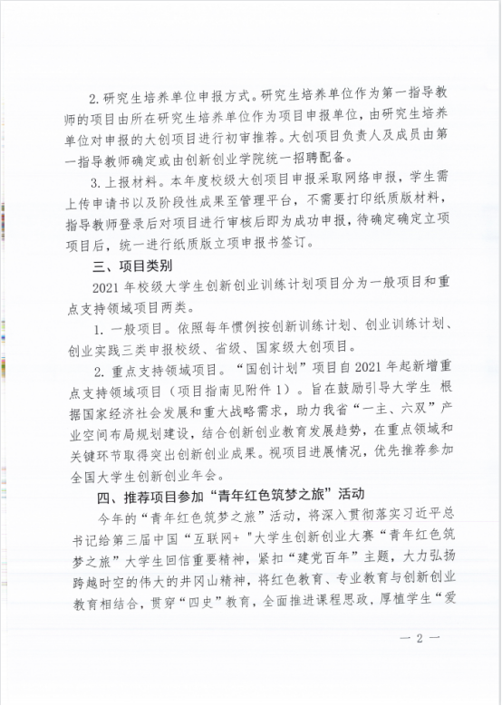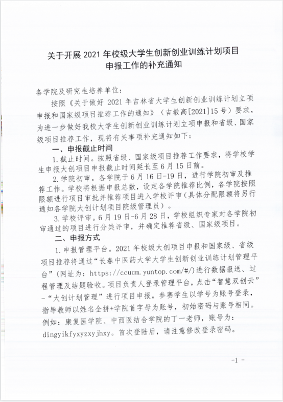 关于开展2021年校级老员工创新创业训练计划项目申报工作的补充说明